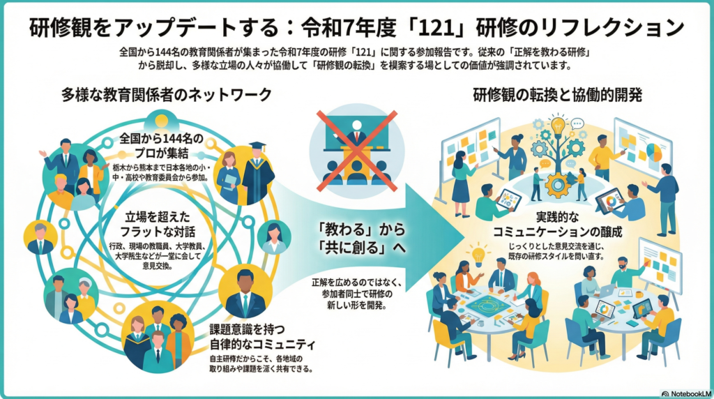 NITS(独立行政法人教職員支援機構)主催の「令和7年度研修マネジメント力協働開発プログラム」です。ちょうど研修のやり方に大きな課題を感じていたところだったので、飛びつくように応募しました。
