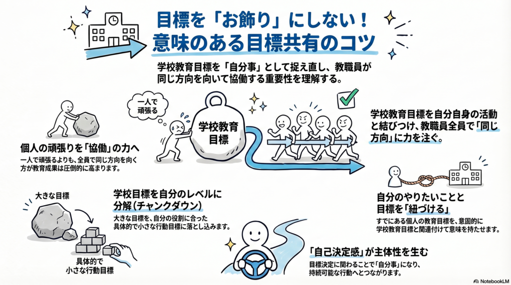 そんな学校はまず、目標を共有する意味を教職員全員で確認する必要があります。